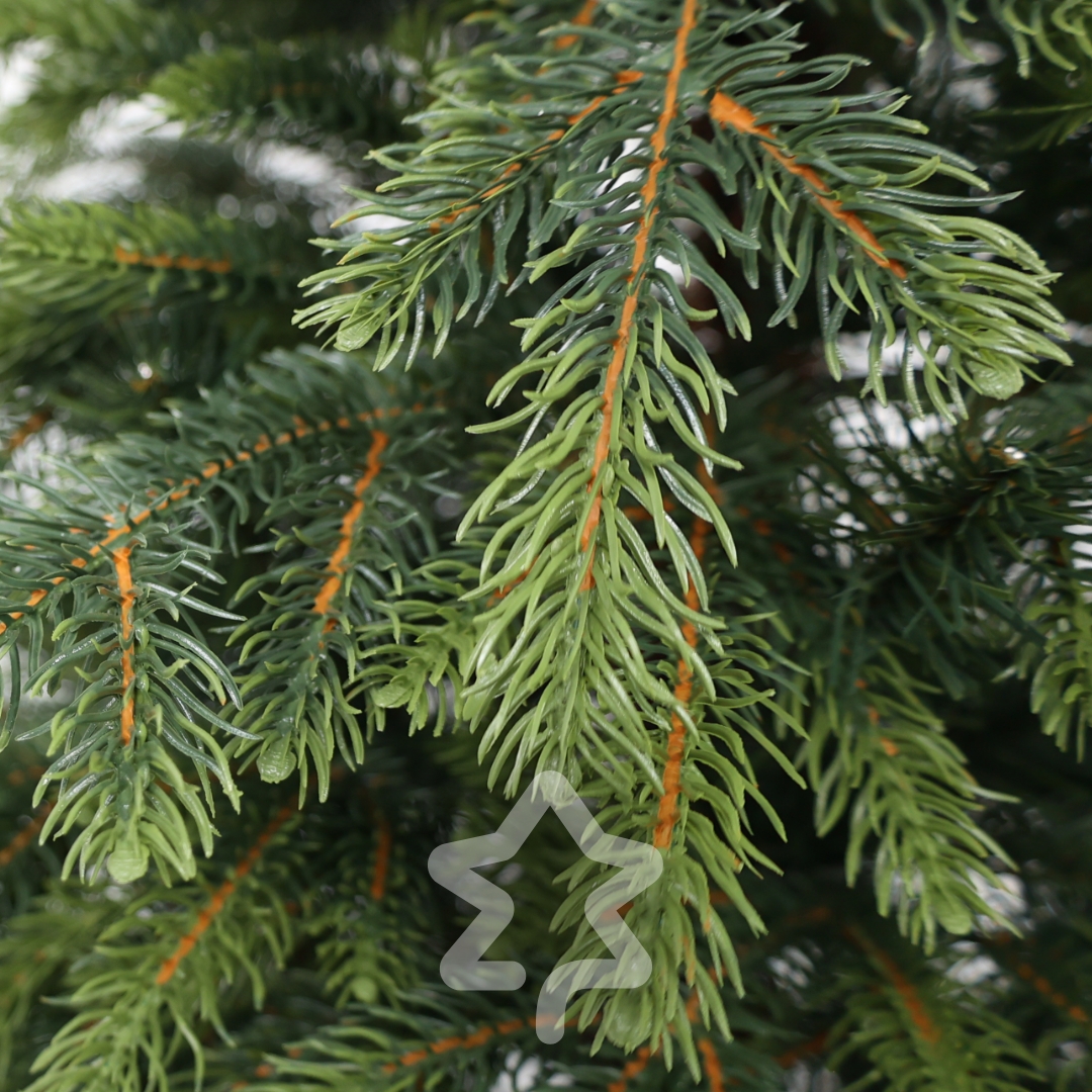 Świerk Natura 210 cm wyróżnia się elegancką sylwetką, klasycznym wyglądem oraz połączeniem igieł 3D PE i 2D PVC z dwukolorowym efektem.