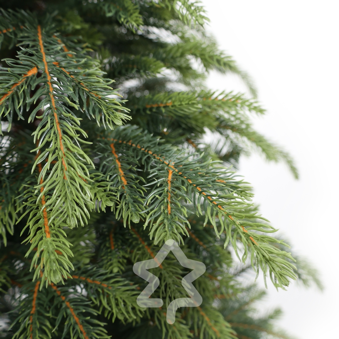 Świerk Natura 210 cm wyróżnia się elegancką sylwetką, klasycznym wyglądem oraz połączeniem igieł 3D PE i 2D PVC z dwukolorowym efektem. Pasuje zarówno do nowoczesnych, jak i klasycznych wnętrz. Ten model od lat cieszy się niesłabnącą popularnością i należy do naszych bestsellerów.