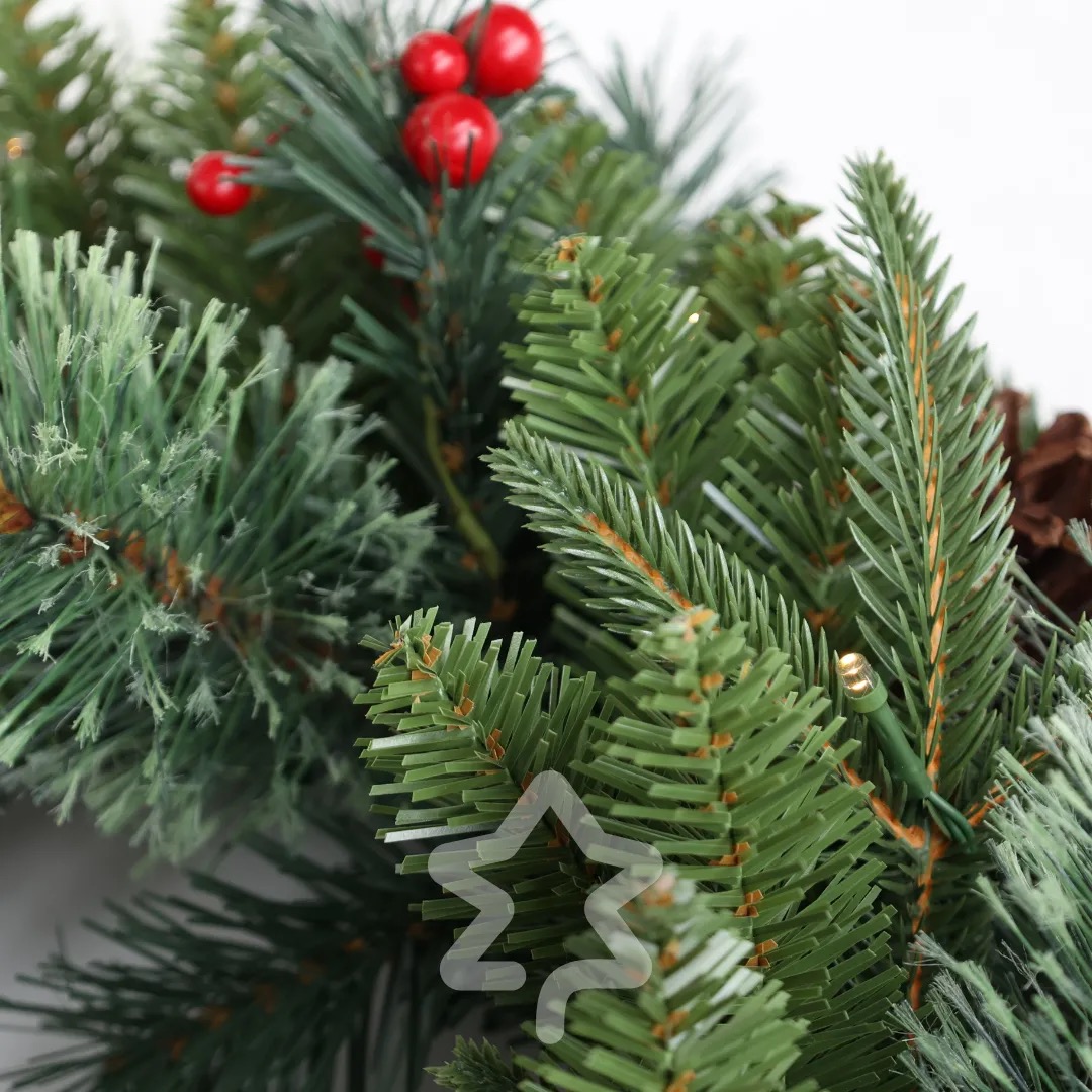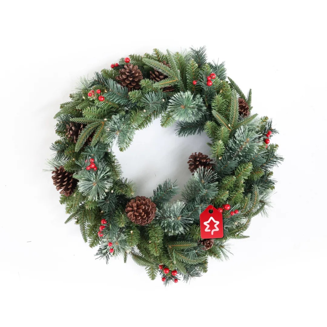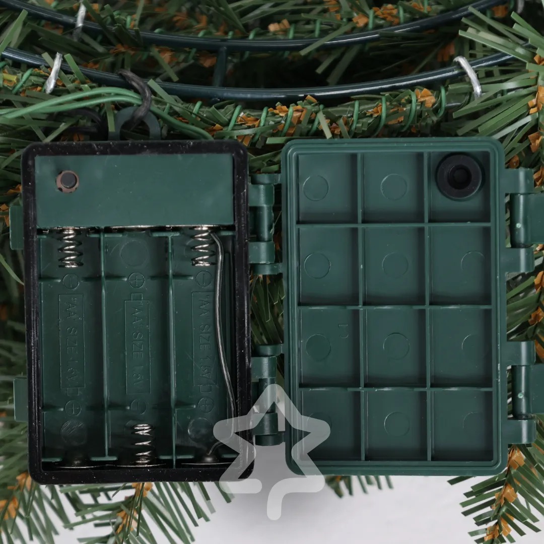 Wieniec świąteczny ozdobny 50 LED 60 cm w klasycznym wydaniu to piękna dekoracja na drzwi, stół lub okno. Gęste igły i solidne wykonanie zapewnią trwałość na wiele sezonów. Oświetlenie LED z 50 diodami daje delikatne, przyjemne światło i eliminuje problem z wymianą żarówek.
